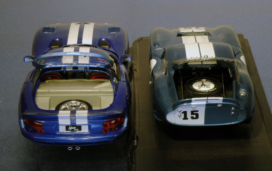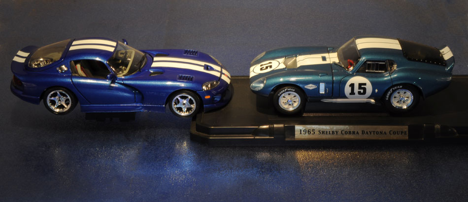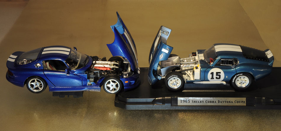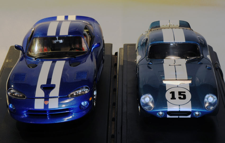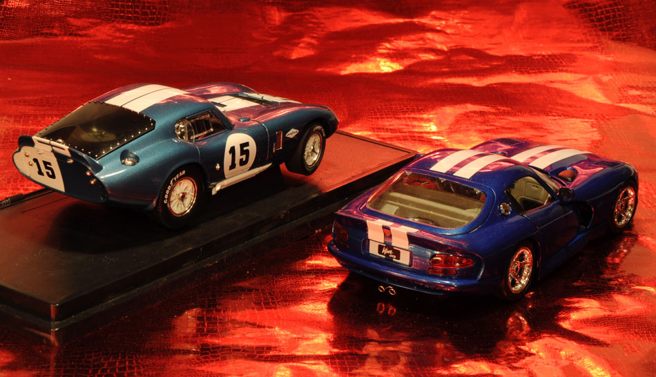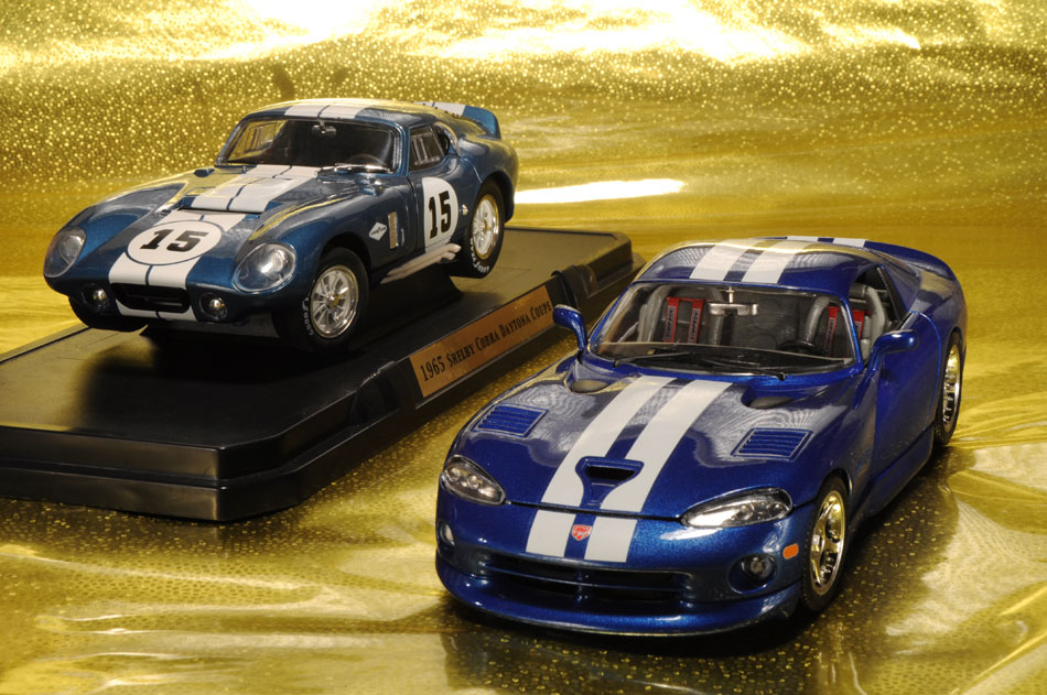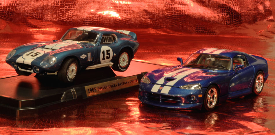 Images of The 1965 & 1969 Shelby Cobra Hand-crafted Ertl Die-cast Metal Replica in 1:18 Scale, 1992 Dodge Viper and 1996 Dodge Viper GTS Durago Italy Metal Replica in 1:18 Scale Copyrighted 2019 by HKK Productions Inc