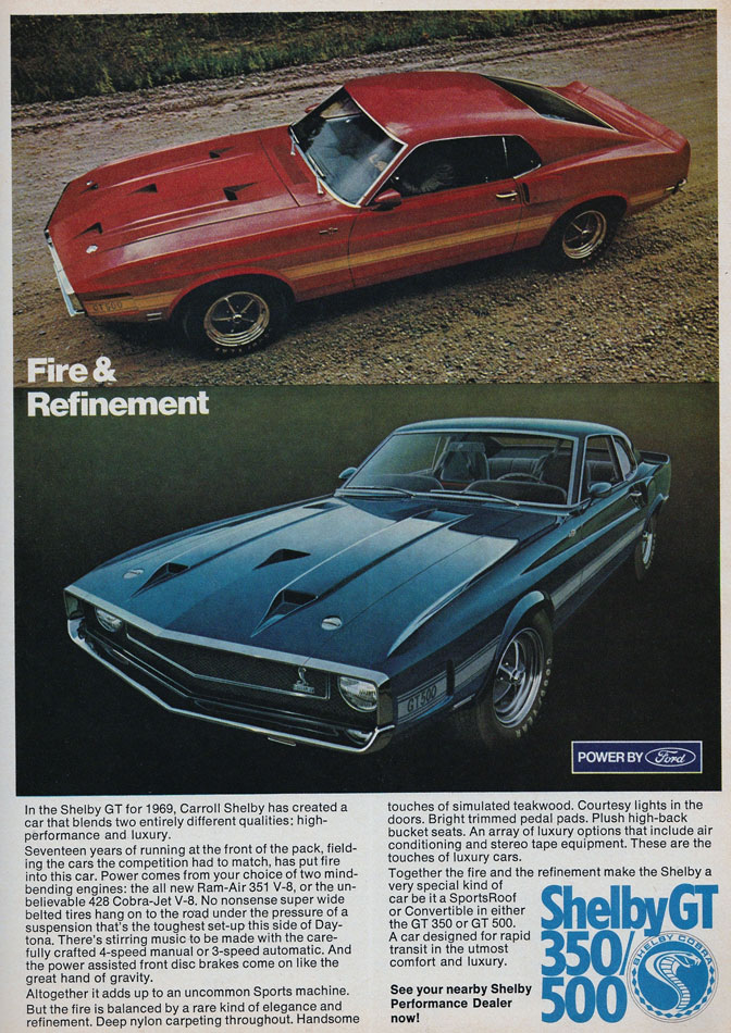 Images of The Carroll Shelby Ads Copyright 1966 – 1969 by the Ford Corporation, Autolite, Champion Spark Plugs Company, Shelby Parts and Accessories, Hai Karate Pfizer Company, Motor Trend Coming Next Month