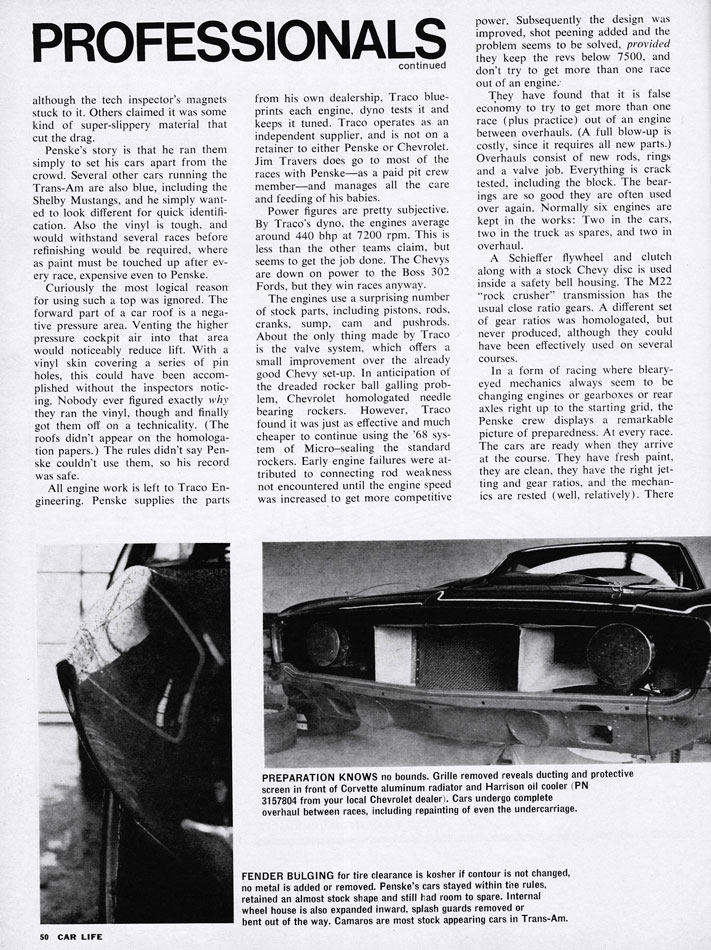 Article from Car Life magazine, December 1969, Trans-Am Title to Camaro pages 66 – 72. Copyright 1969 by Bond Publishing Co, 1499 Monrovia Ave, Newport Beach, CA 92663